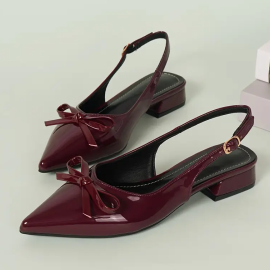 Women’s Burgundy Pointed-Toe Low Block Heel Sandals